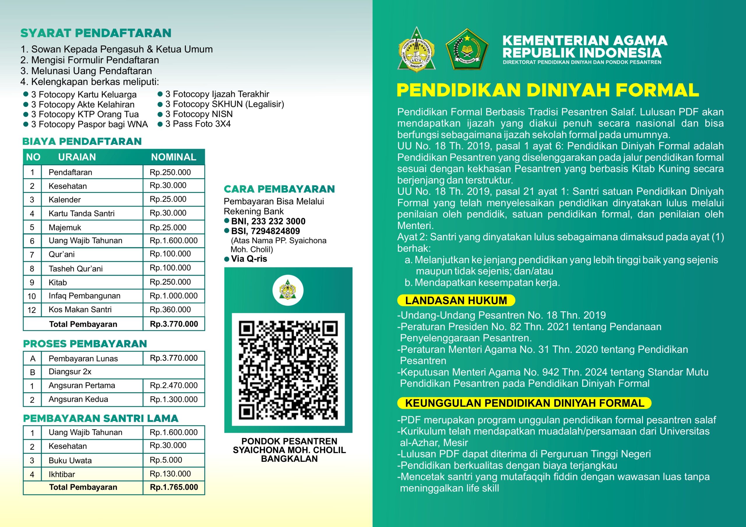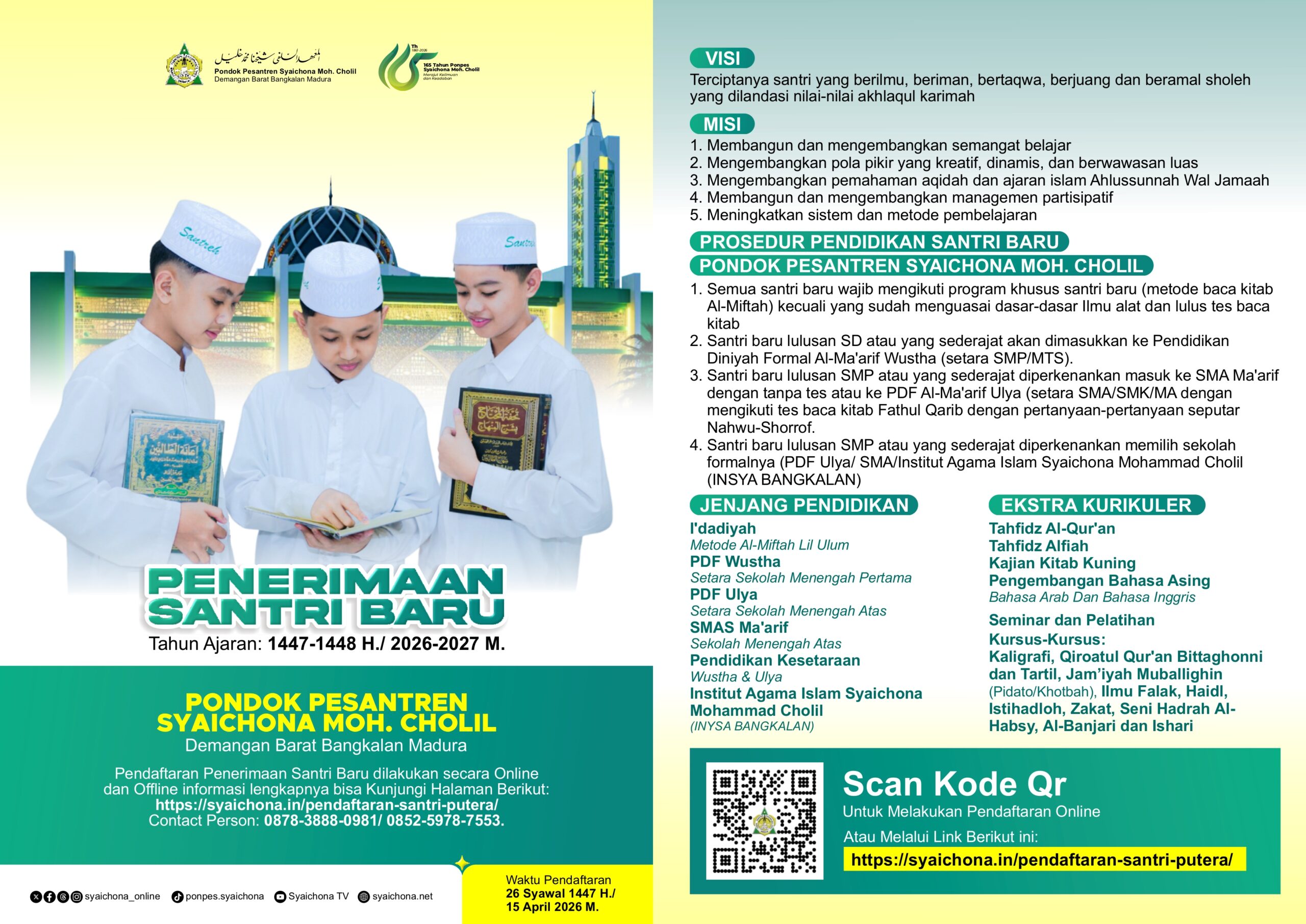 Pendaftaran Santri Baru PP. Syaichona Moh Cholil Bangkalan 2026 M.