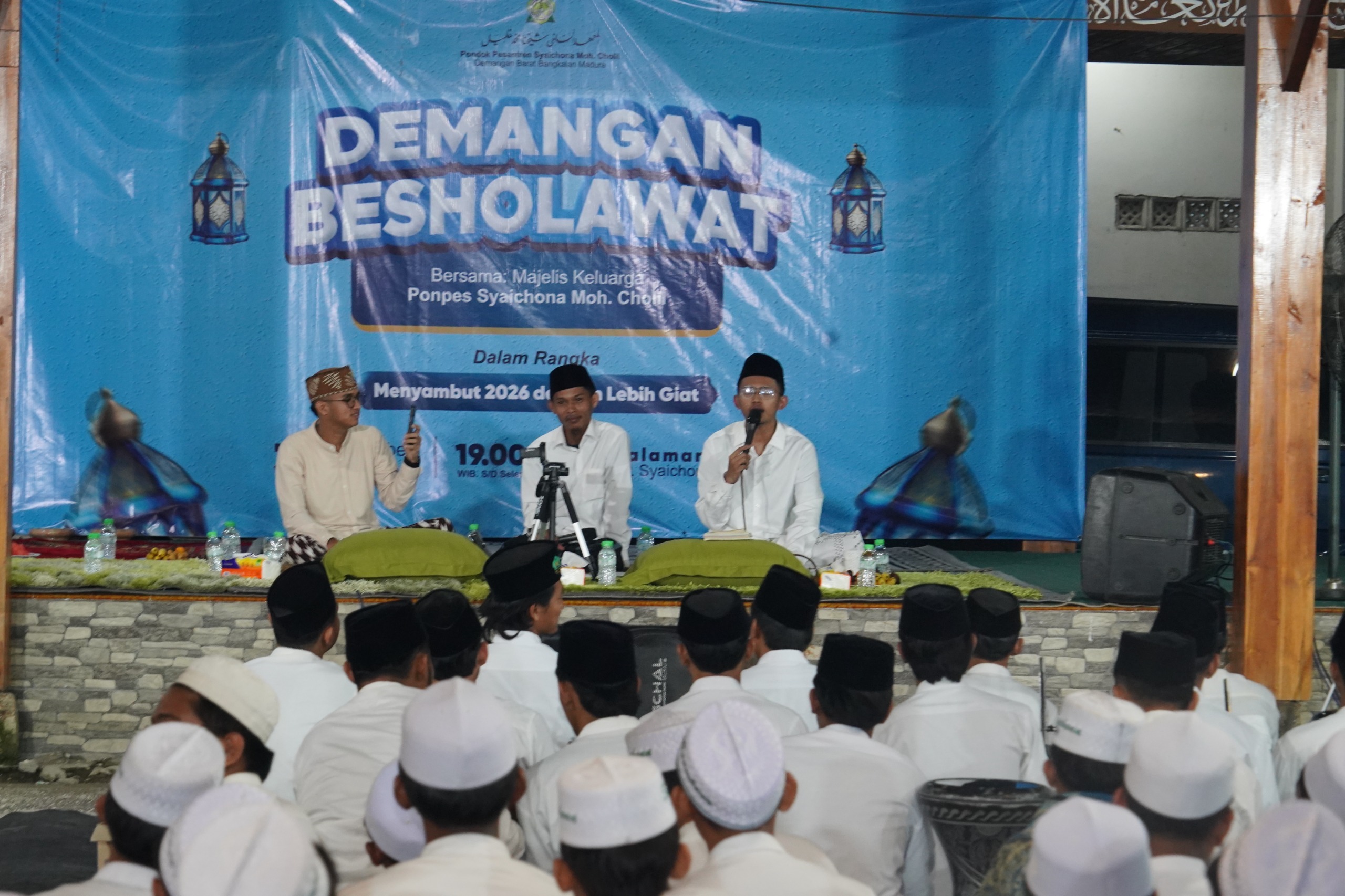 Pondok Pesantren Syaichona Moh. Cholil menggelar acara Shalawat Al-Habsyi bersama Jamiyah Ahbabul Mustofa yang dipimpin langsung oleh Lora Syamim Al-Firdaus dan Lora Najmullah, bersama seluruh santri putra dan putri. Acara tersebut diselenggarakan dalam rangka menyambut tahun baru Masehi 2026 yang diadakan di halaman pesantren pada hari Rabu (31/12/2025).